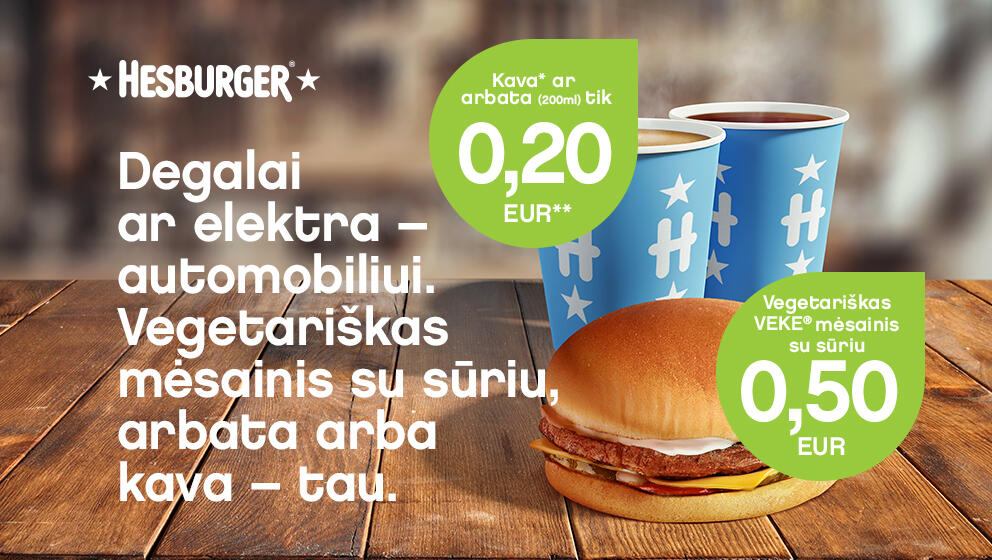 Su NESTE kvitu mėgaukitės VEKE® vegetarišku mėsainiu su sūriu tik už 0,50 Eur, o arbata arba kava tik už 0,20 Eur.