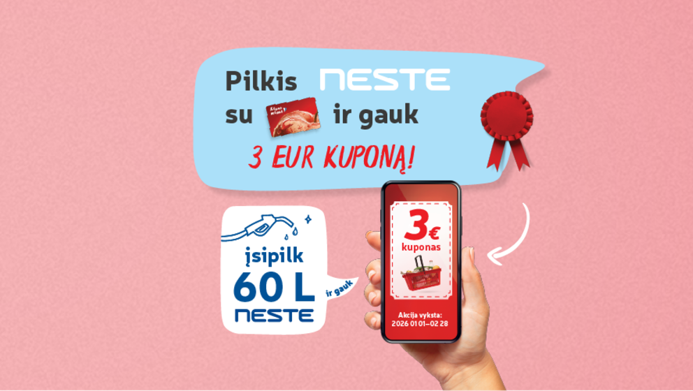 NESTE degalinėse už degalus galite atsiskaityti grynaisiais pinigais, mokėjimo kortele arba NESTE programėle.