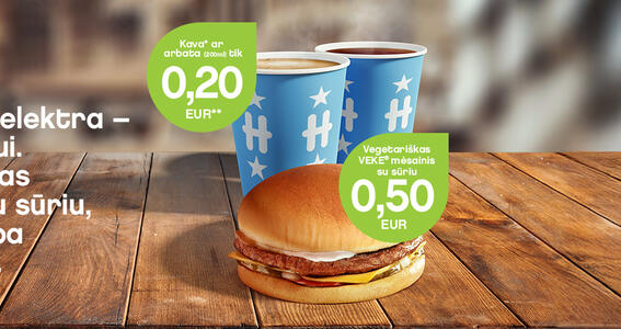 3. Bet kuriame HESBURGER restorane Lietuvoje parodyk NESTE degalų pylimo arba įkrovimo kvitą, ir pasiimk HESBURGER VEKE® vegetarišką mėsainį su sūriu tik už 0,50 Eur, arbatą ar kavą (juodą arba su pienu, 200 ml) tik už 0,20 EUR*.