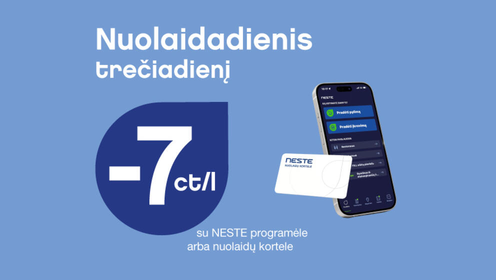 NESTE degalinėse už degalus galite atsiskaityti grynaisiais pinigais, mokėjimo kortele arba NESTE programėle.